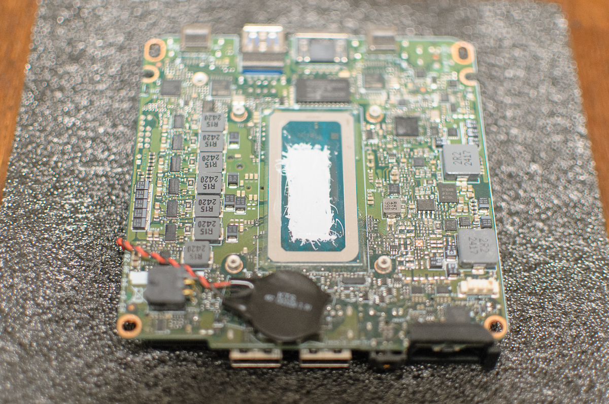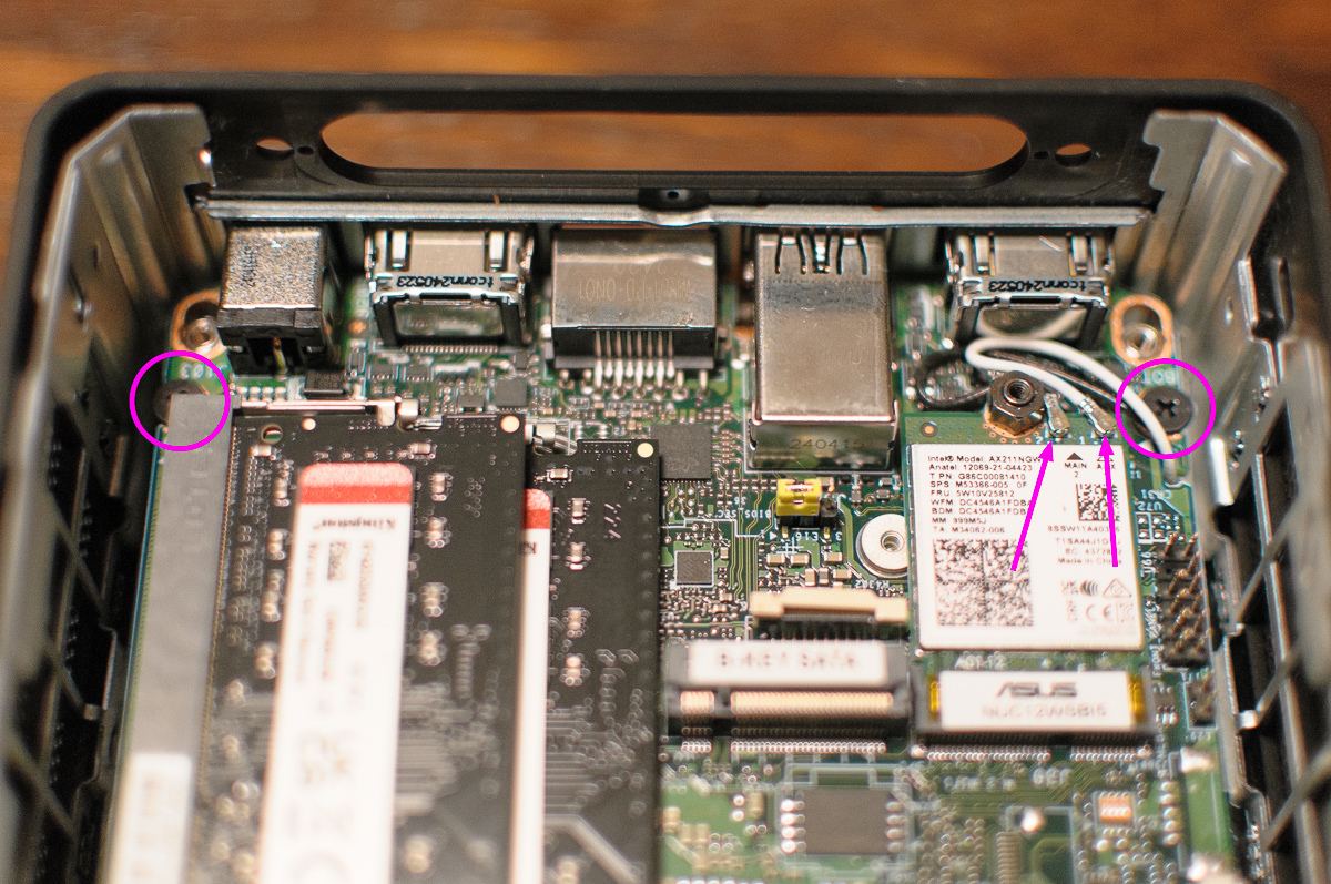 Opening the NUC 12 Pro is very easy, thanks to a great board extraction guide video from Akasa . You don’t need to remove any of the screws that are below the top lid – they don’t hold the motherboard. Also, the memory modules can stay attached.