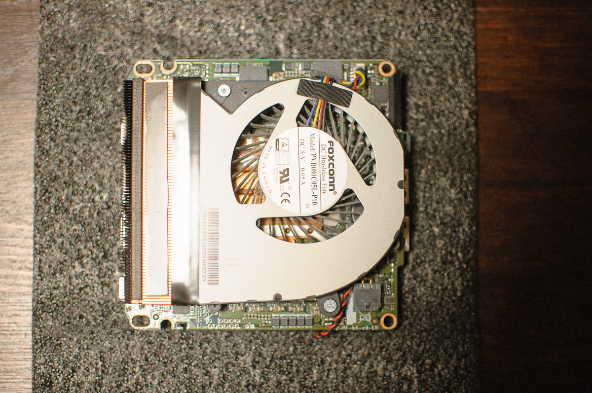 Fixing this poor thermal paste job can reduce temperatures significantly, possibly by more than 10 °C. If you choose not to mod your NUC, you can now reattach the blower fan and reassemble the machine.