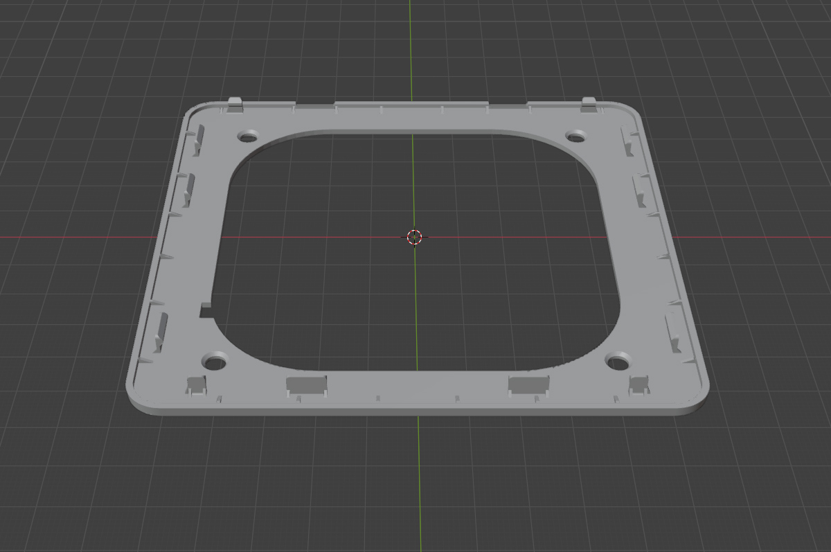 Luckily, Asus provides official 3D models of the lids for some NUC models. These models are complex, and Fusion 360 almost exploded when I imported the NUC 12 Pro one, so I turned to Blender. I’m not proficient in either program, but after watching several tutorials, I managed to cut out a squircle6 hole for a 92 mm fan in the geometric center of the lid. I then cut out recessed (countersink) holes for the fan screws based on fan’s specification. The last step was to cut a small notch for the fan wires to go nicely into the case.